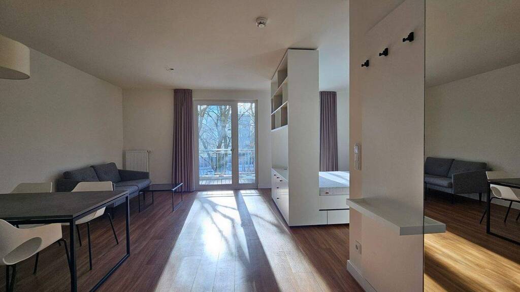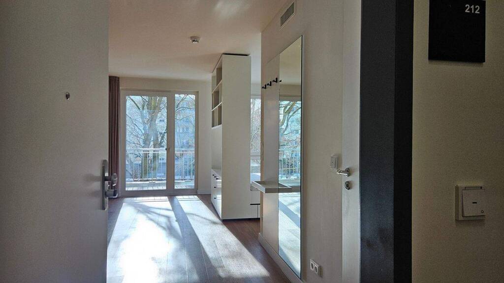 Zur Möbel-Mindestausstattung gehören: - Garderobenmöbel mit Ablage & Ankleidespiegel - Raumteiler als TV-Möbel - Küchenzeile mit Herdset, Mikrowelle, Kühl/Gefrierkombi und Dunstabzug - Esstisch mit Stühlen - Sofa (2-Sitzer) - Verdunkelungsvorhänge - Nachttisch - Bettgestell - Einbauschrank