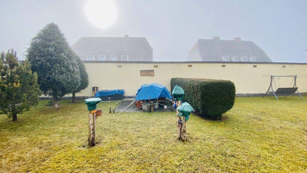 Es steht eine Grünfläche als Allgemeinfläche zur Verfügung, auf der sich die Wohnungseigentümer:innen jeweils eine gemütliche Sitzgelegenheit geschaffen haben, um Zeit im Freien zu verbringen.