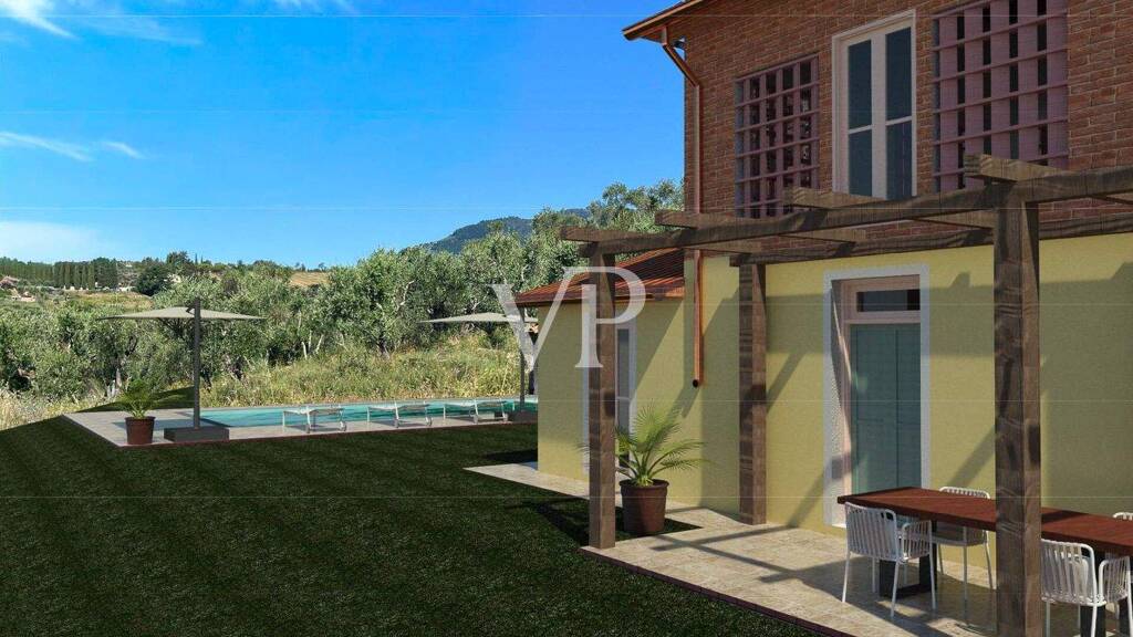Wir bieten ein wunderschönes rustikales Bauernhaus zum Verkauf an, das komplett renoviert wird, mit einer Lieferzeit zwischen 8 und 12 Monaten. Es wird wie folgt zusammengesetzt sein : a) im ersten Stock 5 Zimmer, alle mit Bad; b) im Erdgeschoss eine Wohnfläche von ca. 180 qm. c) Pergola von etwa 29 qm. d) Schwimmbad auf der Westseite mit den Maßen 12,00x 5,00 m (siehe Planimetrie); Hochwertige Ausstattungen, die in jedem Fall zu vereinbaren sind, Klimaanlage in allen Räumen, Neue Sanitäranlage; Neue Klimaanlage; Neue elektrische Anlage; Renoviertes und isoliertes Dach; Dacheindeckung mit neuen Terrakotta-Ziegeln. Kupferrohre Wandstärken von 45 cm bis 65 cm. Parkettböden in den Zimmern. Zugehöriges Land, teilweise mit Olivenhainen und teilweise mit Rasen bebaut, mit einer Fläche von von etwa 24.000 Quadratmetern. Versorgungseinrichtungen: a) Aquädukt; b) Methangas; c) Enel-Anschluss; d) Artesischer Brunnen in Alleineigentum. Recht auf Entnahme aus der bestehenden Quelle auf der Südseite unter der Straße Möglichkeit der Erweiterung um ca. 60 qm. - Möglichkeit von 8 Zimmern 8 Bädern