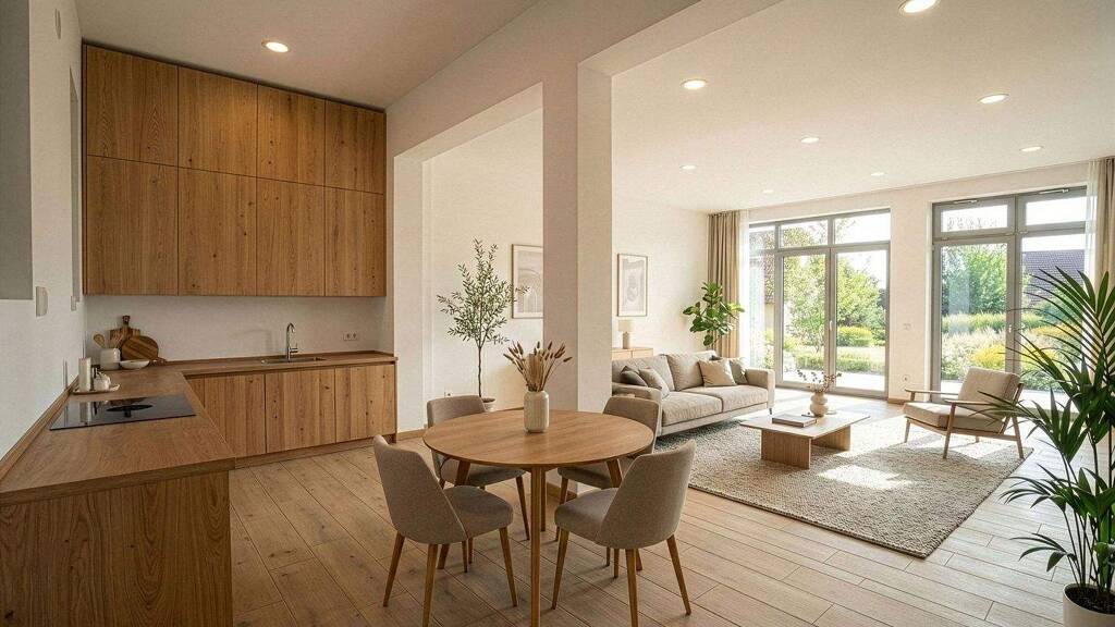 Das 1996 erbaute Gebäude wurde 2025 vollständig saniert und ist dabei sehr hochwertig ausgestattet wurden. Zu den Ausstattungsmerkmalen zählen unter anderem eine Fußbodenheizung in allen Räumen, hochwertige keramisch Bodenbeläge in allen Räumlichkeiten. Bodentiefe Fenster zur Garten- und Terrassenseite (Süden) sorgen für maximale Lichtdurchflutung und eine helle Wohnatmosphäre.