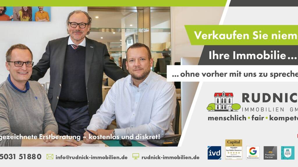 Sonstiges Wenn Sie dieses Angebot näher anspricht, dann übersenden Sie uns bitte eine Kontaktanfrage idealerweise nebst Ihrer Anschrift, Email und Rückrufnummer(n). Die Anfrage richten Sie bitte an: "Dipl.-Ökonom Rudnick GmbH, Nordstraße 1 in 31515 Wunstorf, per Email: info@rudnick-immobilien.de. Wenn Sie bedingt durch das gesetzliche Widerrufsrecht als Verbraucher keine 14 Tage warten möchten, bis Sie vollständige Objektunterlagen sowie die Anschrift der Immobilie von uns erhalten, benötigen wir Ihre ausdrückliche Zustimmung hierzu. In der Regel finden Sie eine ausführliche Belehrung über Ihr Widerrufsrecht, über unseren Umgang mit dem Datenschutz sowie unsere Allgemeinen Geschäftsbedingungen auf der Internetseite des Erstkontaktes, also z.B. bereits bei immobilienscout, immonet, immowelt, Ebay-Kleinanzeigen ..., in jedem Fall aber auf unserer homepage www.rudnick-immobilien.de .