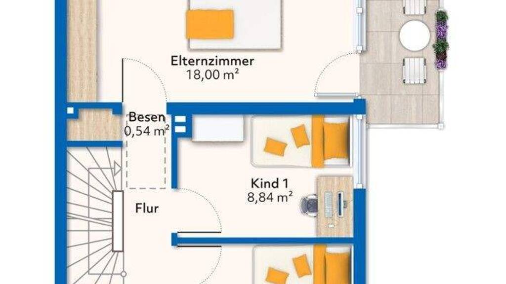 Im Erdgeschoss stehen Ihnen ein offener Wohn- und Essbereich, eine separate Küche, ein Gäste-WC und eine Diele inkl. Garderobe zur Verfügung. Über den Wohnbereich oder die Küche erreichen Sie die Terrasse und den pflegeleichten Garten.