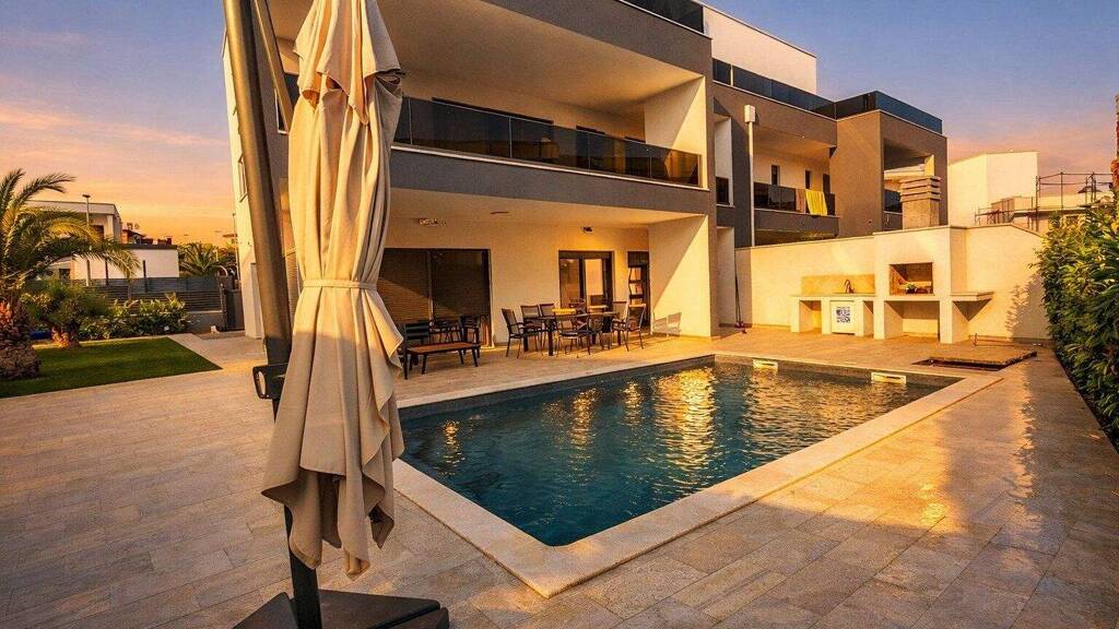 POREC Region - Eleganz und Rückzug: Hochwertige Design-Doppelhaushälfte mit Pool und privater Wellnesszone
