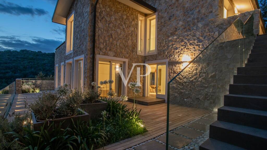 Das mehrstöckige Haus besteht aus einem großen offenen Wohnzimmer mit Wohnbereich, Fernsehzimmer, Essbereich und ausgestatteter Küche. Von dieser Etage aus hat man durch helle Fenstertüren Zugang zum Essbereich im Freien an der Seite der Küche und zu den beiden Entspannungsbereichen im Freien, wo sich neben einer großen Terrasse mit Holzboden auch ein reizvoller Swimmingpool mit Blick ins Grüne befindet. Im ersten Stock dieser herrlichen Residenz befindet sich der Schlafbereich, bestehend aus zwei Hauptschlafzimmern mit Bad en suite, die mit jeglichem Komfort ausgestattet sind, einem Schlafzimmer mit französischem Bett, das ebenfalls über ein Bad mit Dusche verfügt, und einem vierten Schlafzimmer, das als Arbeitszimmer genutzt werden kann, ebenfalls mit Bad und einer schönen Panoramaterrasse.