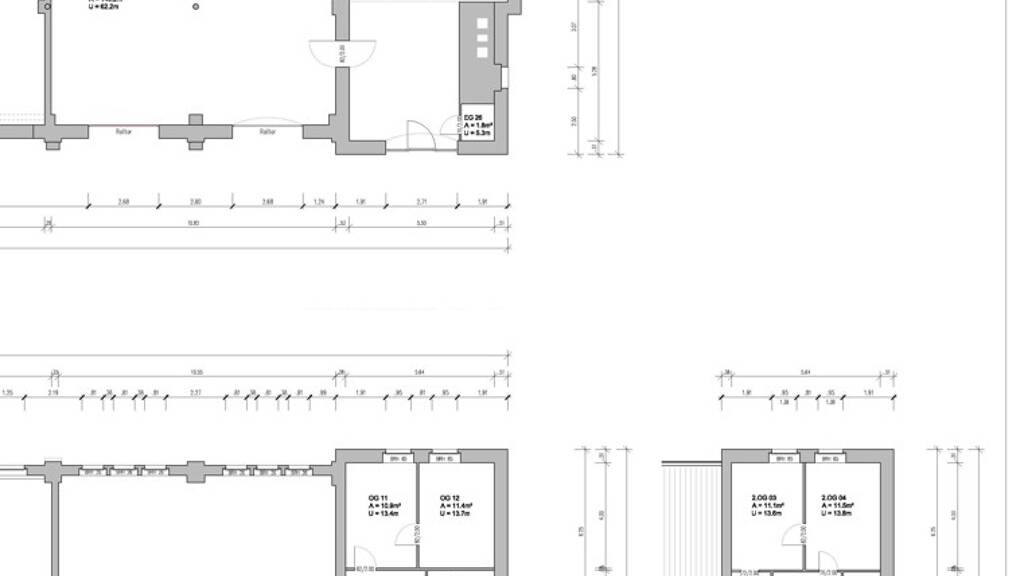 Beispielhaft bieten wir Ihnen hier eine Fläche von ca. 627m² im rechten Gebäudeteil über drei Etagen an.