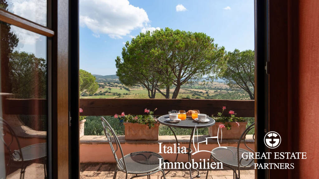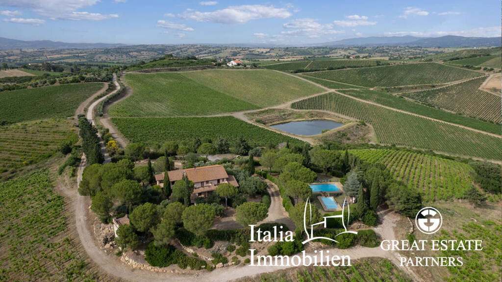 In hügeliger und herrlicher Lage, mit freiem Blick auf die gesamte umliegende Landschaft und die Weinberge, die zum Tal hin abfallen, befindet sich dieser schöne Bauernhof in einer der schönsten und begehrtesten Gegenden der Maremma. Das Anwesen besteht aus einer Hauptvilla, einem großen Weinkeller mit Terrakotta-Gewölben und ca. 15 Hektar, von denen 11 mit Weinbergen bepflanzt sind, die als Morellino D.O.C.G. registriert sind.