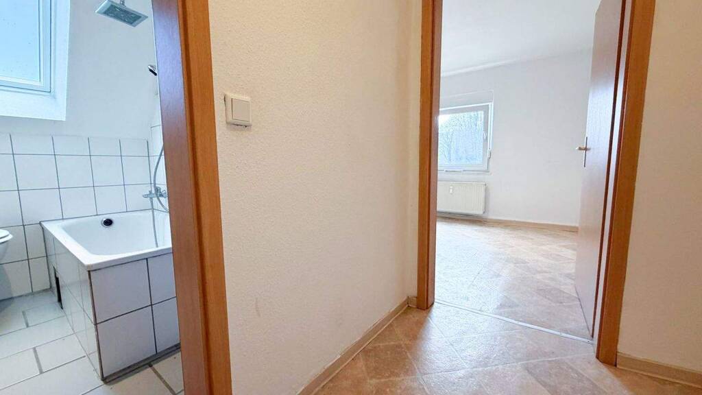 Die Dachgeschosswohnung befindet sich in ruhiger Lage in der Straße Trift 1 in Meschede und eignet sich ideal für Singles oder Paare. Die Wohnung hat eine Wohnfläche von ca. 35 m². Über den Flur sind das Badezimmer und das Wohnzimmer mit Küche erreichbar. Das kleine Badezimmer verfügt über eine Badewanne mit einer Dusche drin. Der Wohnbereich mit offener Küche ist hell und freundlich gestaltet und bietet Platz für einen gemütlichen Wohn- und Essbereich. Das separate Schlafzimmer ermöglicht eine klare Raumtrennung und ausreichend Privatsphäre. Die Kaltmiete beträgt 300 €, die Warmmiete 410 €. Ein Einzug ist ab sofort möglich. Die Wohnung ist für Mieter mit Sozialbezug geeignet.