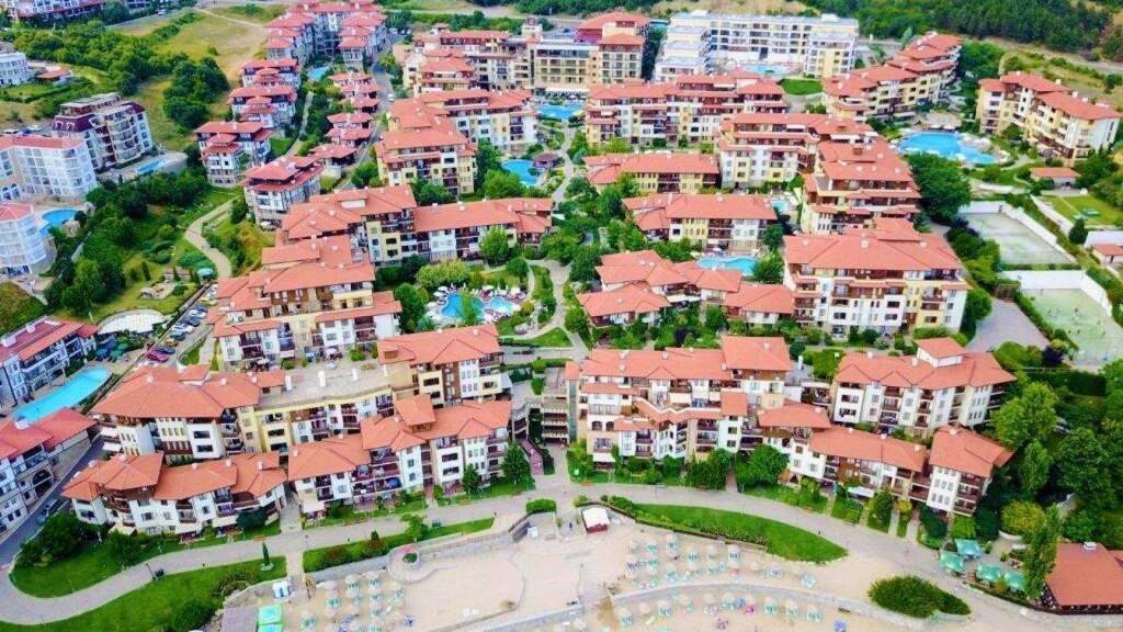 Die Anlage zählt zu den bekanntesten und hochwertigsten Resorts an der bulgarischen Schwarzmeerküste und liegt direkt am feinen Sandstrand, eingebettet zwischen grünen Hügeln und dem Meer - mit einem spektakulären Blick auf die Bucht von Sonnenstrand.