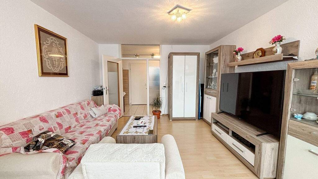 Zur Ausstattung gehören ein großzügiger Wohn-/Essbereich, ein separates Schlafzimmer, ein Badezimmer mit Badewanne sowie ein praktisches Kellerabteil für zusätzliche Staufläche. Das Angebot wird durch den Aufzug im Gebäude und eine zusätzliche Einzelgarage (Kaufpreis 20.000 €) komfortabel abgerundet.
