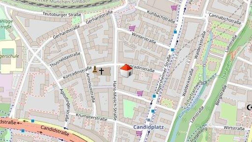In ca. 3 Gehminuten zur U-Bahnhaltestelle "Candidplatz" U1 und zur Bushaltestelle 52; und in ca. 12 Gehminuten zur U-Bahnhaltestelle "Kolumbusplatz" U2;
