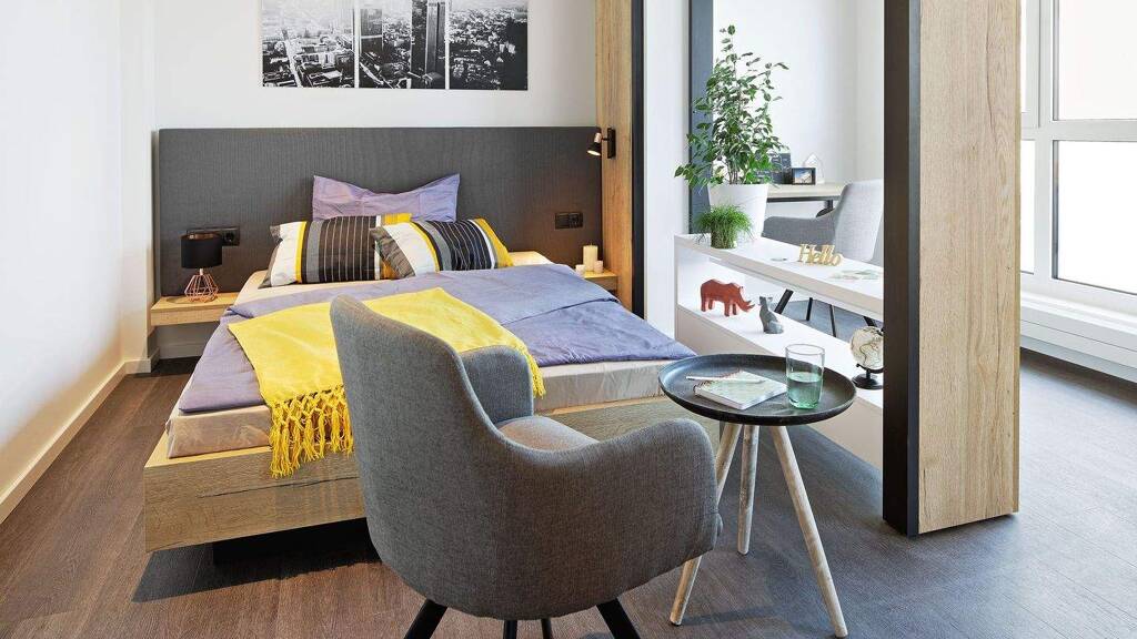 Die Classic Plus Studios gibt es je nach Verfügbarkeit in verschiedenen Etagen mit mindestens 21 m² ab 939 €.