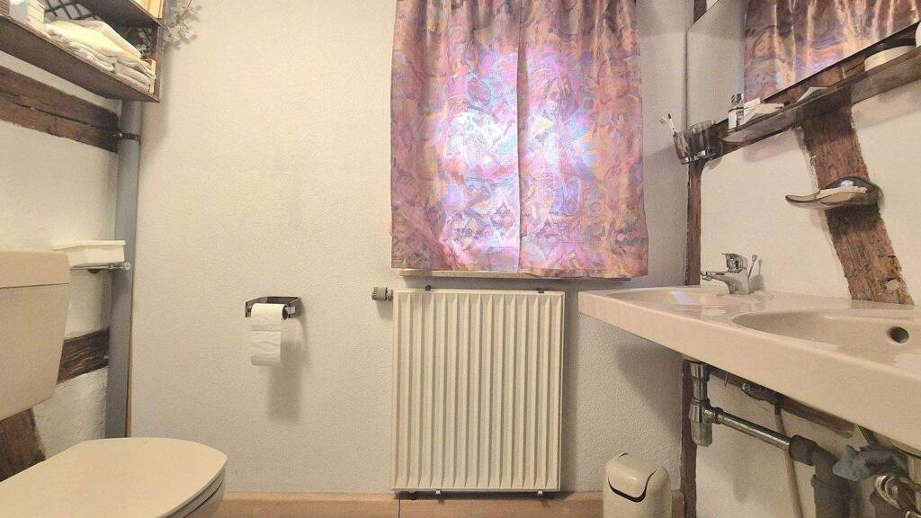 Die Beheizung erfolgt über eine Grundwasserwärmepumpe (Baujahr 1993). Im Erdgeschoss ist eine Fußbodenheizung installiert, im Obergeschoss sorgen Niedertemperaturkonvektoren für angenehme Wärme.