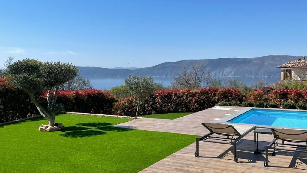 Zum Verkauf steht eine luxuriöse Villa mit Swimmingpool und Meerblick auf der Insel Krk. Die Villa besteht aus einem Erdgeschoss und einem Obergeschoss. Das Erdgeschoss besteht aus einem Flur, einer offenen Küche mit Esszimmer und Wohnzimmer, einem Schlafzimmer, einem Badezimmer, einer Toilette und einem Abstellraum. Das Wohnzimmer öffnet sich zu einer überdachten Terrasse und weiter zum Swimmingpool, Sonnendeck und Garten. Über eine Innentreppe gelangt man in die erste Etage, wo sich ein Flur, drei Schlafzimmer, zwei Bäder, eine Loggia und eine überdachte Terrasse befinden. Die Besonderheiten dieser Villa sind Fußbodenheizung in allen Räumen, vier Inverter-Klimaanlagen und Videoüberwachung. Die Villa ist mit Aluminium-Tischlereiarbeiten, Hebe-Schiebetüren mit Dreifachglas, Glasgeländern auf den Terrassen sowie hochwertiger Keramik und Sanitärkeramik ausgestattet. Der Garten verfügt außerdem über einen Außengrill und vier Parkplätze. Dieses Anwesen ist eine großartige Gelegenheit für Ihren eigenen Urlaub das ganze Jahr über und bietet aufgrund des Außenpools und des Meerblicks auch die Möglichkeit einer touristischen Vermietung während der Sommersaison. "Goldene Insel" war in der Antike der Name der Insel Krk, und das ist kein Zufall. Die Insel Krk ist aufgrund ihrer Naturschönheiten, ihres reichen kulturellen Erbes, ihres vielfältigen önogastronomischen Angebots und ihrer zahlreichen Möglichkeiten für einen aktiven Urlaub ein beliebtes Touristenziel. Dank ihrer Lage ganz im Norden der Adria ist sie die erste und nächstgelegene Insel für alle Besucher vom europäischen Festland, die das Inselleben des Mittelmeers erleben möchten. Krk ist durch eine Brücke mit dem Festland verbunden und es gibt auch moderne und schnelle Autobahnen, die ganz Europa direkt mit Krk verbinden. Krk verfügt außerdem über einen eigenen internationalen Flughafen, der mit vielen Städten in ganz Europa verbunden ist. Als leicht zugängliche Insel ist Krk sicherlich eine gute Wahl für alle Touristen, die eine Pause von den Menschenmassen, der Hektik und dem Stress der Großstädte suchen.