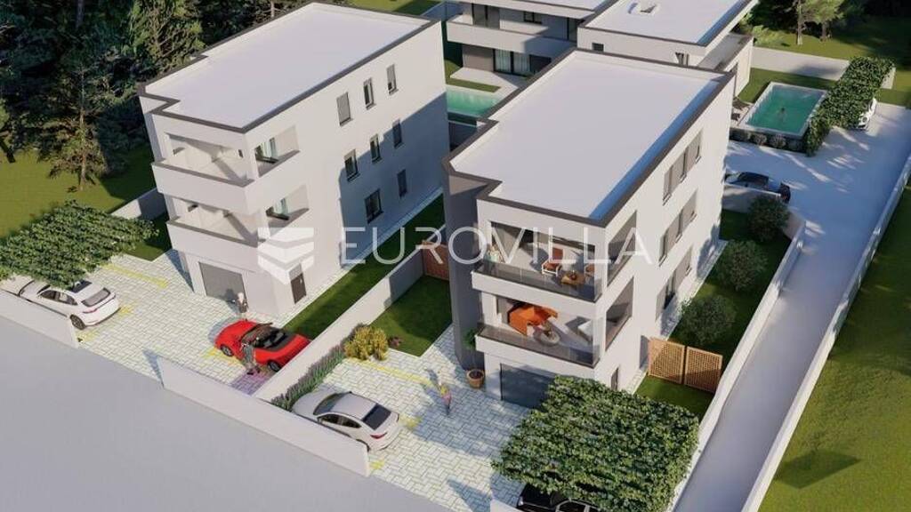 Istra, Medulin - nova, luksuzna i moderna izgradnja stanova 300 m od plaze. Zgrada se sastoji od sveukupno tri stambene jedinice, svaka na svojoj etazi. Spomenuti stan nalazi se u prizemlju zgrade i sastoji se od: ulaznog hodnika, dnevnog boravka, kuhinje s blagovaonicom, predsoblja, dvije spavace sobe, kupaonice i dvorista velicine 145 m2. Stanu pripada jos i jedno parkirno mjesto ispred zgrade.Postoji dodatna mogucnost kupnje spremista ispod stubista.Svi stanovi u zgradi biti ce opremljeni visokokvalitetnom troslojnom PVC stolarijom u antracit boji s elektricnim roletama i komarnicima na svim prozorima. Grijanje i hladenje pomocu klima uredaja koji ce biti instalirani u dnevnom boravku i spavacim sobama te je dodatno kroz cijeli stan predvideno elektricno podno grijanje. Kupaonice ce biti kompletno opremljene sa keramikom na podu visoke kvalitete, dok je u spavacim sobama predviden laminat.Za vise informacija stojim na raspolaganju.... Vise na eurovilla.hr, ID: 903748
