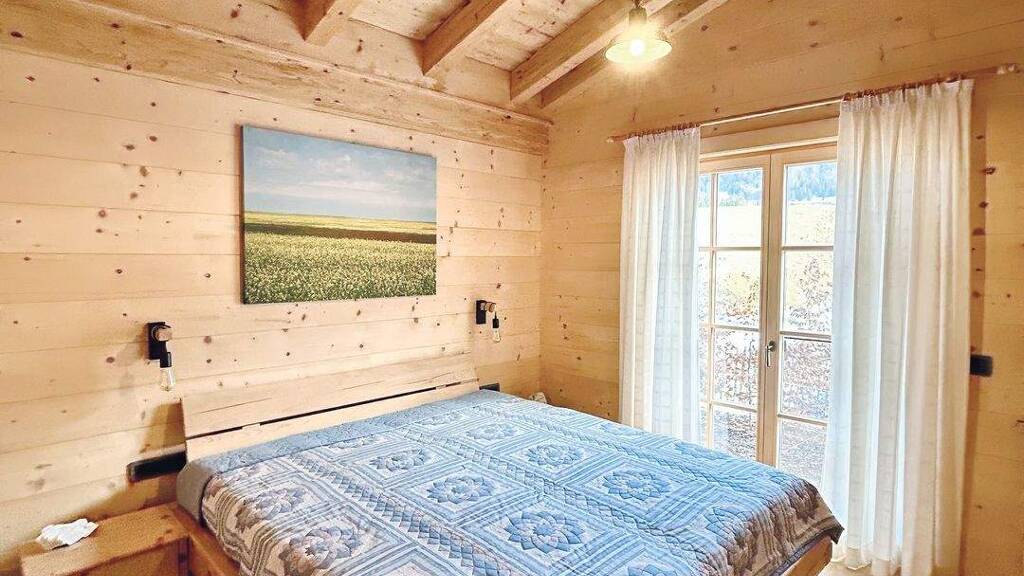 Der offen gestaltete Wohnraum ist das Herzstück - eine großzügige, exklusive Küche lädt zum Kochen und Verweilen ein, während der imposante Sichtdachstuhl die alpine Atmosphäre unterstreicht. Die charaktervollen Balken erzählen von natürlicher Authentizität und schaffen ein Ambiente, das Moderne und urige Gemütlichkeit harmonisch verbindet. Große Fenster öffnen den Blick in die Bergwelt und lassen Licht und Natur ins Innere fließen.