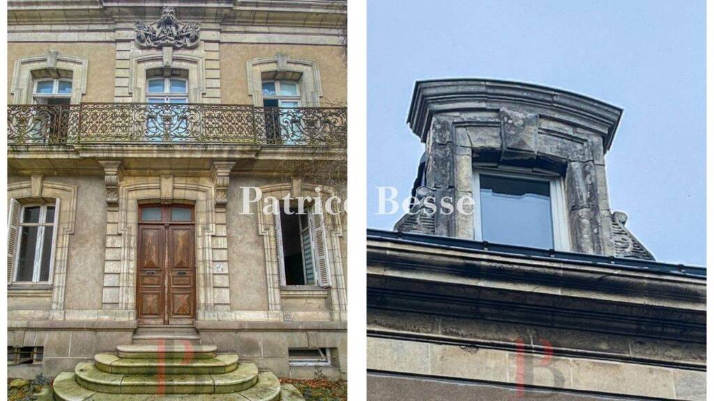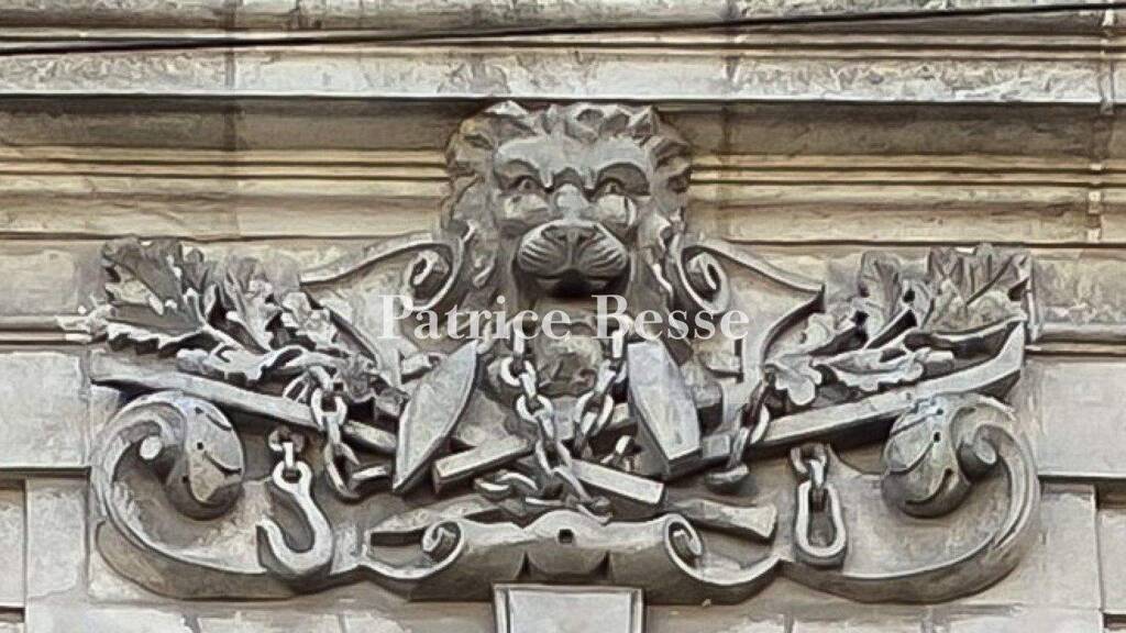 The houseThe street-facing facade, rendered with beige and greyish tones, is punctuated with quoins and window and door surrounds of dressed stone. On the ground floor, three slightly arched openings add to the edifice's plinth course. Two tall windows fitted with louvred shutters frame a central entrance door of solid wood with panels edged with mouldings. On the first floor, three tall windows stand behind a continuous balcony with a finely crafted wrought-iron balustrade - a centrepiece of the magnificent edifice. This wrought-iron guardrail with foliage motifs rests upon a stone base with a cornice of mouldings, supported by corbels sculpted with an acanthus motif. Above the central window, there is a remarkably refined stone cartouche: a lion's head framed between foliage scrollwork, quarrying tools and a chain - an ...
