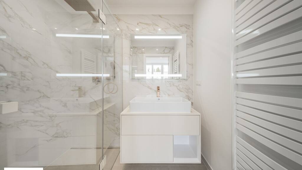 Im Regelgeschoss stehen 5 exklusive Wohnungen zum Verkauf mit Größen zwischen 24 und 130 Quadratmetern zur Verfügung. Sonnige Aussichten garantiert der wunderschöne Blick in den Park mit viel Grün und altem Baumbestand welcher für ein Mehr an Lebensqualität sorgt.