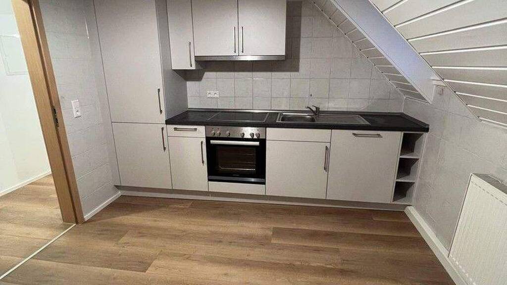 In Schramberg wartet eine frisch renovierte 2-Zimmer-Dachgeschosswohnung auf neue Mieter. Die Wohnung wurde 2023 renoviert und überzeugt durch ihren gepflegten Zustand, eine praktische Raumaufteilung sowie eine helle, freundliche Atmosphäre. Auf ca. 62 m² Wohnfläche verteilen sich ein Wohn-/Essbereich, ein separates Schlafzimmer, eine moderne Küche und ein Tageslichtbad im 60er Jahre Flair. Die stilvolle Einbauküche ist bereits im Mietpreis enthalten und bietet mit Herd, Backofen, Spüle und Stauraum alles, was man zum Kochen braucht.