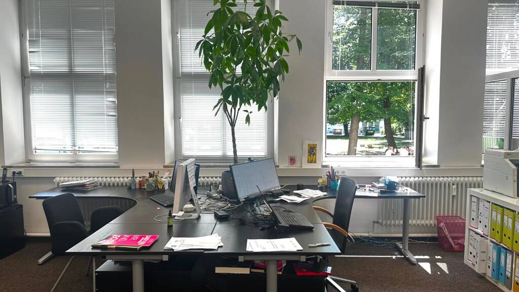 Für unser wunderschönes Erdgeschoss-Büro im Augsburger Gewerbehof in Kriegshaber suchen wir einen Nachmieter. Mit 6 großen Fenstern ausgestattet und Blick auf den kastaniengesäumten Innenhof bereitet das Arbeiten hier viel Freude.