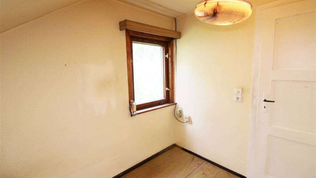 Das Wohnzimmer im Erdgeschoss ist großzügig geschnitten und punktet mit der Möglichkeit für einem gemütlichen Kaminofen, der an kalten Tagen für behagliche Wärme sorgen kann. Mit einer neuen, großflächigen Fensterfront ließe sich das Raumgefühl zusätzlich aufwerten - für lichtdurchflutetes Wohnen mit Panorama.