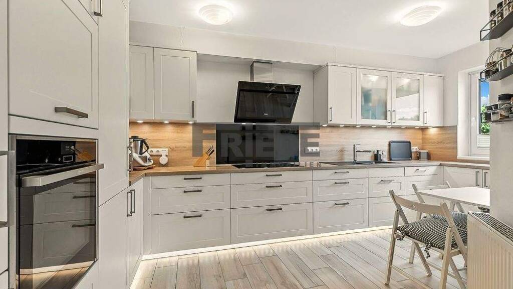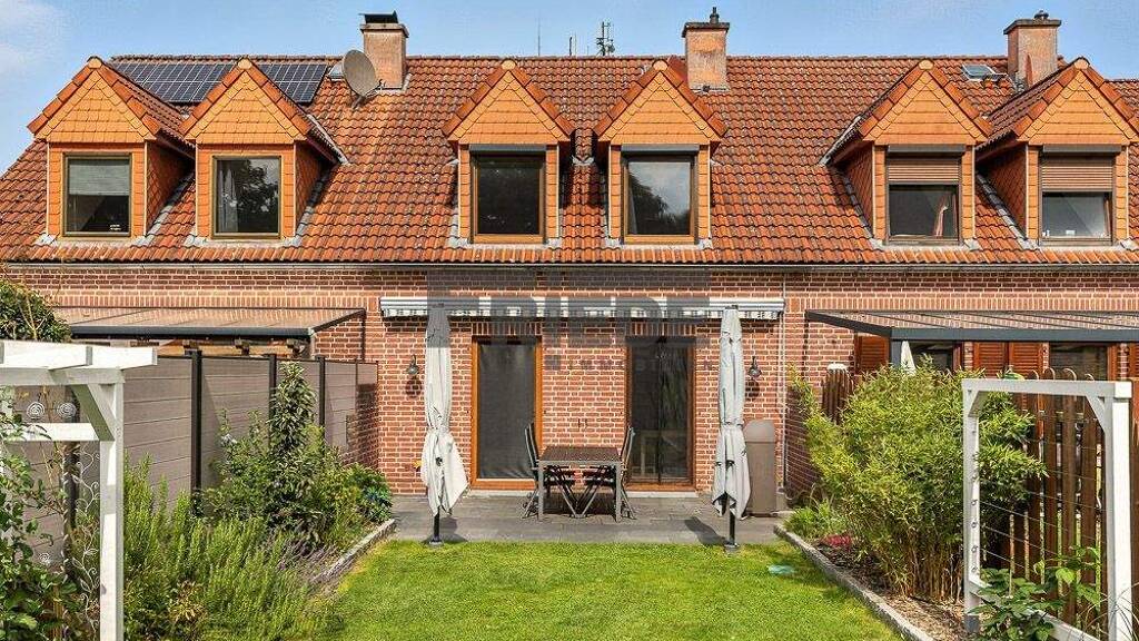 Dieses charmante Reihenmittelhaus verbindet zeitgemäßen Wohnkomfort mit einer behaglichen Atmosphäre und überzeugt durch seine durchdachte Raumgestaltung sowie den liebevoll gestalteten Garten. Auf ca. 95 m² Wohnfläche erwartet Sie im Erdgeschoss ein freundlicher Eingangsbereich, eine moderne Einbauküche in Weiß mit hochwertigen Geräten, ein Gäste-WC mit bodentiefer Dusche sowie ein großzügiger Wohn- und Essbereich mit direktem Zugang zur sonnigen Terrasse.