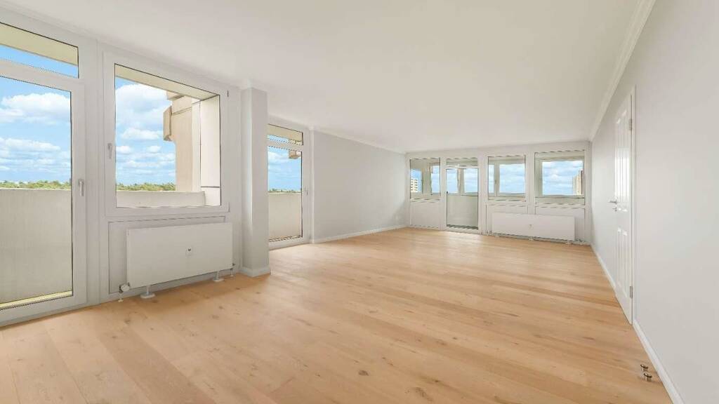 Die hochwertig sanierte 4-Zi.-Etagenwohnung, ist barrierefrei und befindet sich im 7. Obergeschoss eines Mehrfamilienhauses mit 118 Wohneinheiten. Das Haus wurde 1979 in Massivbauweise gebaut. Im Haus befinden sich 2 Aufzüge. Die schöne Wohnung wurde im Jahr 2023 komplett entkernt und saniert. Es wurde ebenfalls im Jahr 2023 eine hochwertige Einbauküche mit elektrischen Markengeräten eingebaut. Die helle Wohnung besticht auch durch die gute Aufteilung. Von der großzügigen Diele und Flur aus gelangen Sie in alle 4 Zimmer, in die Küche, in das Gäste-WC in den Hauswirtschaftsraum, in den großzügigen Abstellraum und in das hochwertige Bad. Vom sehr großzügigen Wohnzimmer aus gelangt man in den Süd-Wintergarten und auf 2 Balkone mit einer sehr schönen Aussicht über den Kanal. Vom Schlafzimmer aus gelangt man auf einen Balkon. Zur Wohnung gehört ein Kellerraum und ein Kfz-Außenstellplatz. Zur Gemeinschaftsnutzung steht ein Fahrradraum und ein Trockenraum zur Verfügung. Die hochwertig ausgestattete Wohnung ist frei und kann sofort bezogen werden.