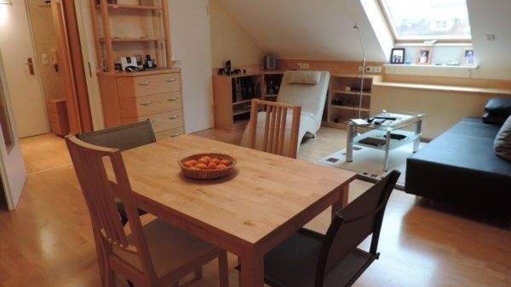 Die geschmackvoll, mit individuell gefertigten Einbaumöbeln komplett möblierte Maisonette-Wohnung befindet sich im ersten Stock eines gepflegten Zweifamilienhauses.