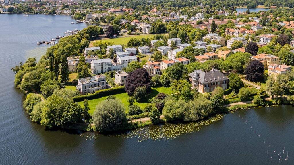Schon beim Betreten der parkähnlichen, privaten Wohnanlage entsteht das Gefühl, in eine andere Welt einzutreten - ruhig, stilvoll und repräsentativ. Hier erwartet Sie ein außergewöhnlicher Rückzugsort, der Großzügigkeit, Sicherheit und mediterranes Flair vereint. Auf dem malerischen "Glienicker Horn" entstanden ab 1998 sieben exklusive Residenzen im italienischen Stil. Inspiriert von der historischen Villa Kampffmeyer aus den 1920er Jahren, verbindet die Architektur klassische Eleganz mit moderner Villenarchitektur. Ockerfarbener Putz, Naturstein, Ziegeldächer, Pergolen und großzügige Dachterrassen fügen sich zu einem harmonischen Gesamtbild zusammen.