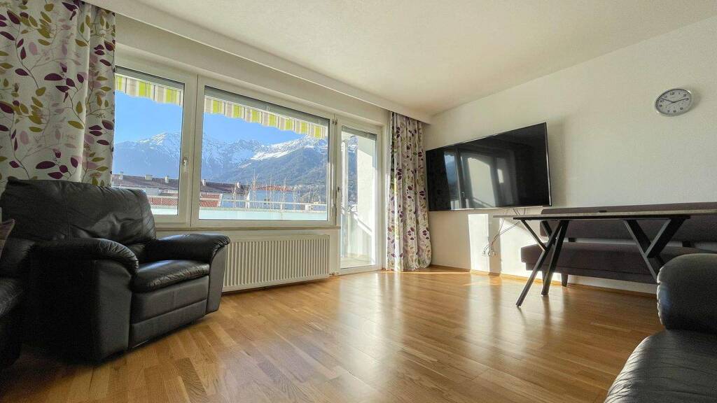 - Lichtdurchflutetes Wohnzimmer mit Zugang auf den großen Balkon mit herrlichem Bergblick