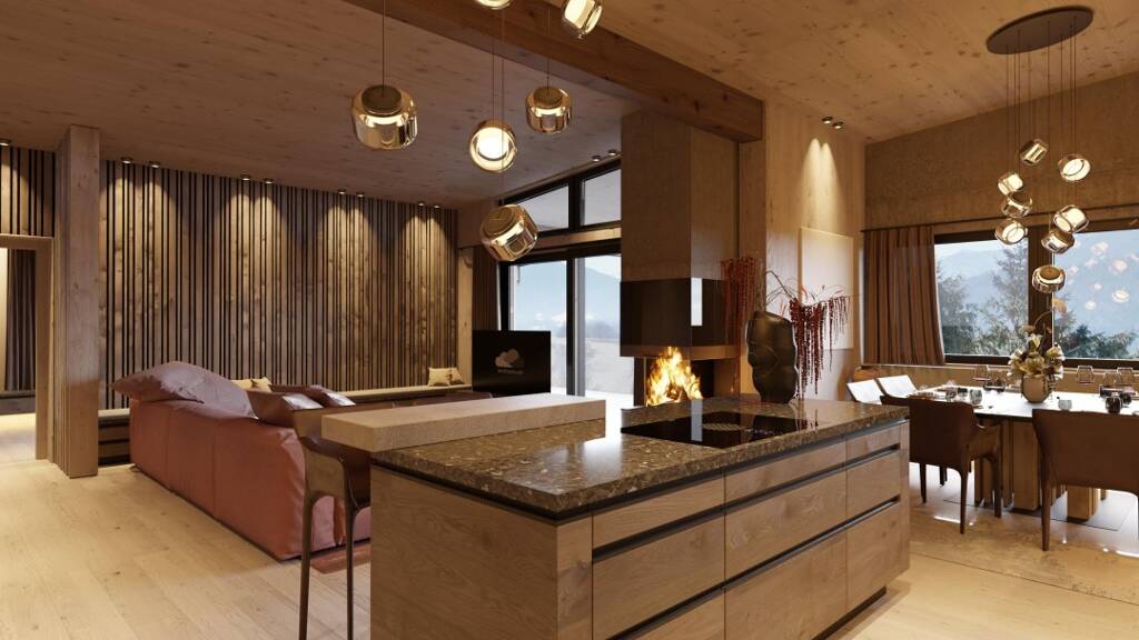 Außerdem punktet das Penthouse mit seinem alpinen Lifestyle und der einzigartigen Aussicht auf die umliegende Bergwelt der Kitzbüheler Alpen.