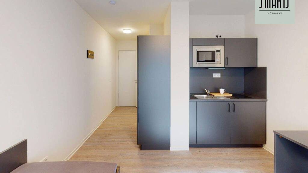 Das moderne Mikroapartment ist Teil der Apartmentanlage "SMARTS Nürnberg". Über 7 Stockwerke verteilt befinden sich 459 möblierte Apartments. Aufgrund der modernen Ausstattung und Möblierung können die neuen Bewohner des SMARTS Nürnberg unkompliziert mit dem Koffer einziehen. Wer Lust hat gleichgesinnte Mitbewohner zu treffen kann hierfür die Gemeinschaftslounge mit Zugang zur Dachterrasse nutzen. Zudem steht den Bewohnern ein Waschraum mit Waschmaschinen und Trocknern (kostenpflichtig) zur Verfügung.