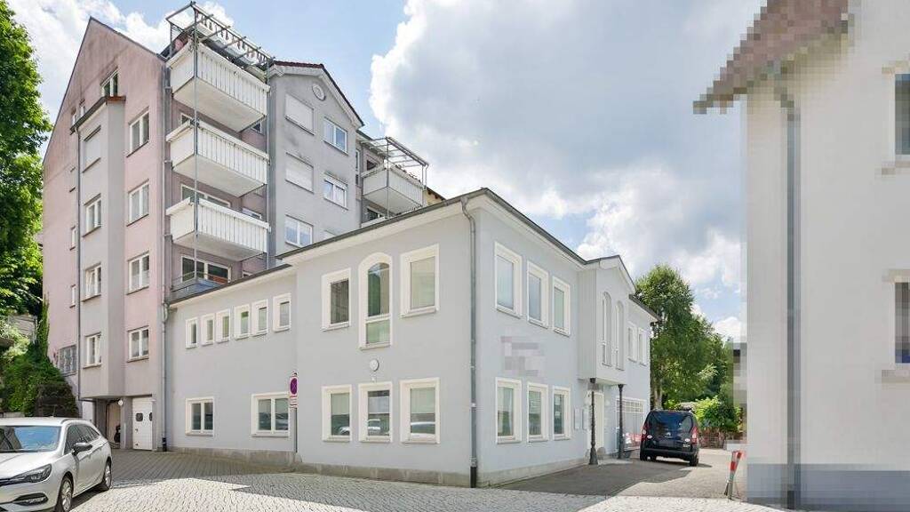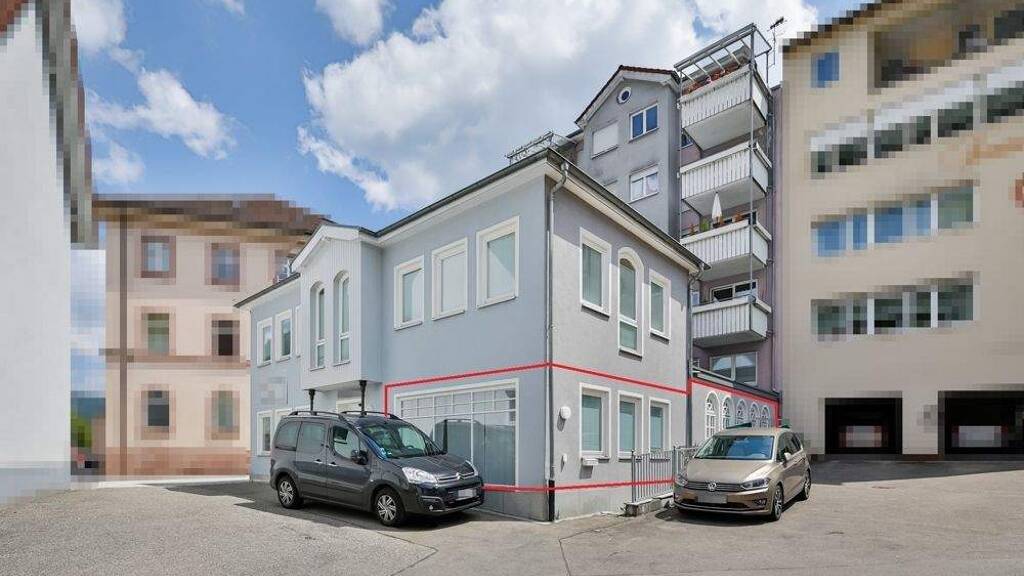 In einem attraktiven, ca. 1996 erstellten Wohn- und Geschäftshaus, bestehend aus einem Wohntrakt mit 8 Wohneinheiten im hinteren Bereich und einem vorderen, gewerblichen Teil mit 5 Einheiten, wird jetzt der rechte Teil vom Erdgeschoss zum Verkauf angeboten.