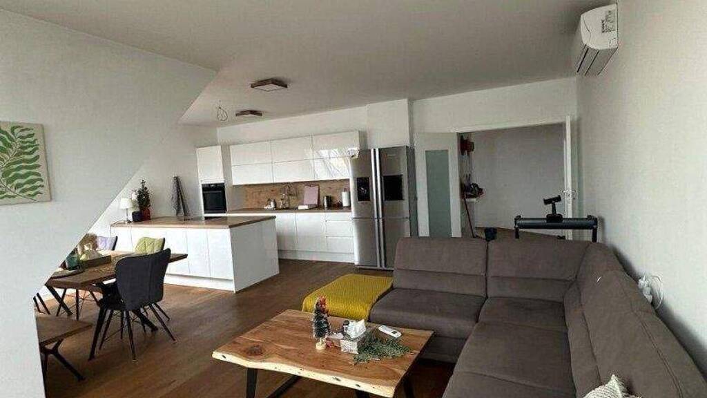 SEHR Grosse Sonnige Dachgeschosswohnung mit Grosser Dachterasse 360° Blick Klmatisiert/Gemeinschaftsgarten/ Garege im Eigentum Möbliert und DAN Küche.