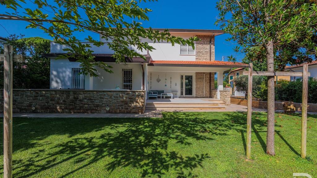 Villa am Meer Willkommen zu dieser grandiosen Villa, welche sich in dem hochwertigen Villenviertel von Fortei dei Marmi befindet. In einer ruhigen und sonnenverwöhnten Lage, nur 500 Meter vom funkelnden Meer entfernt, erhebt sich diese beeindruckende Immobilie majestätisch und elegant.