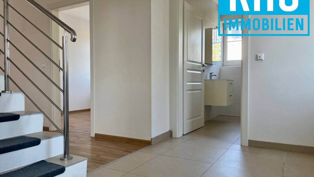 Die im 1. Obergeschoss (ohne Lift) gelegene Wohnung erstreckt sich über zwei Ebenen und beeindruckt durch ihre großzügige und lichtdurchflutete Gestaltung.