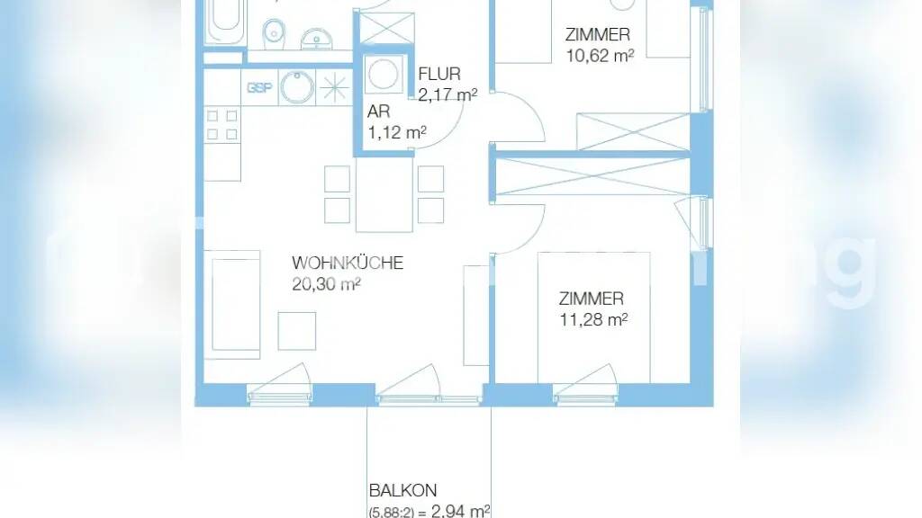 3 Zimmer • 55 m² • 2. Geschoss