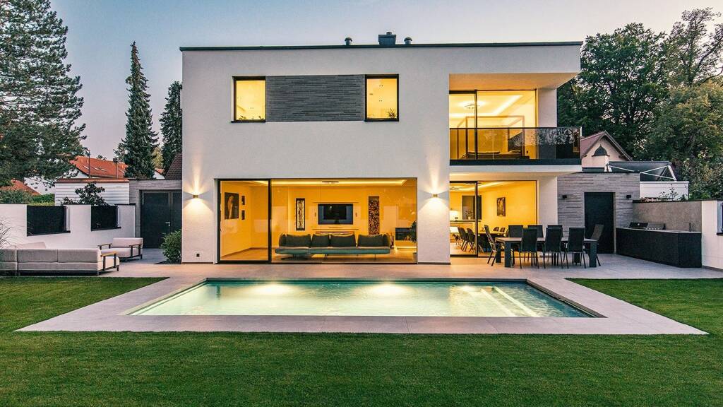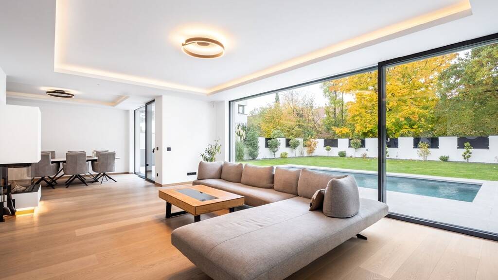 Luxus und Perfektion vereinen sich in diesem außergewöhnlichen Anwesen zu einem Wohnkonzept von seltener Eleganz. Die klare, puristische Linienführung der Architektur betont das Wesentliche und schafft eine zeitlose Ästhetik. Großzügige Fensterfronten lassen die Räume in natürlichem Licht erstrahlen und erzeugen eine Atmosphäre von Offenheit und Leichtigkeit.