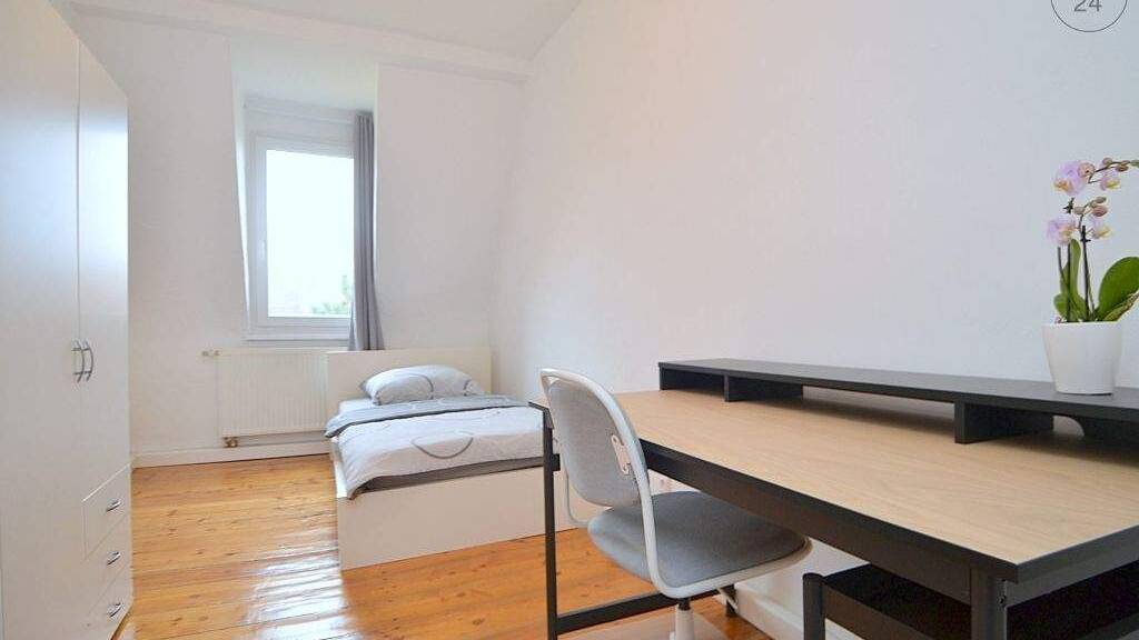 Helles möbliertes und im Oktober 2025 neu renoviertes WG-Zimmer in einer 4-Zimmer-Wohnung mit WLAN im 4. OG eines Mehrfamilienhauses in Nürnberg/Gostenhof.