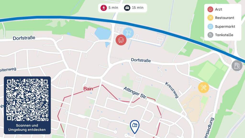 Dieses freistehende Einfamilienhaus im Landhausstil befindet sich in ruhiger Wohnlage am Rand einer Siedlung in Rain. Die Immobilie wurde 1991 in massiver Bauweise errichtet und steht auf einem ca. 713 m² großen Eckgrundstück. Sie bietet eine Wohnfläche von ca. 155 m², verteilt auf Erdgeschoss und ausgebautes Dachgeschoss.