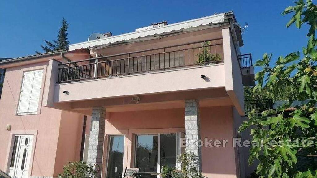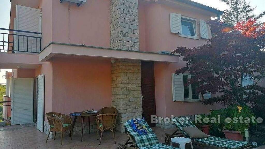 Von der 1. Etage aus haben Sie Zugang zur Terrasse und zum angelegten Garten. Die geräumige Terrasse enthält eine überdachte Sommerküche mit Grill und einem großen Tisch für angenehme Zusammenkünfte, einen gepflegten mediterranen Garten und einen beheizten Swimmingpool. Das Haus ist von einer Mauer und einem grünen Garten umgeben, sodass die Lage selbst auch sehr ruhig ist und Ihnen absolute Privatsphäre ermöglicht.