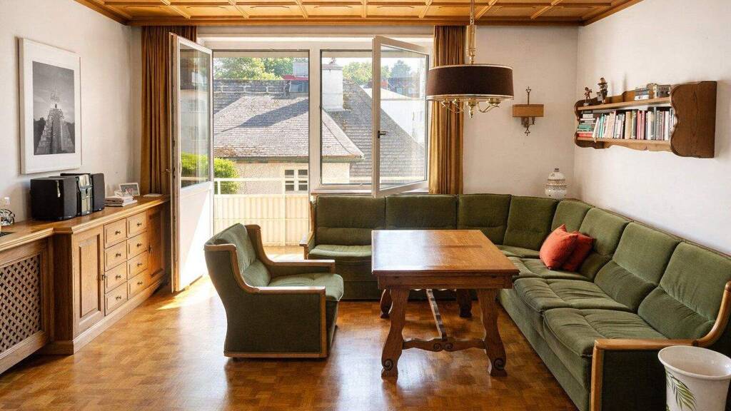 Die Ausstattung entspricht teilweise einem älteren, jedoch sehr gepflegten Standard. Küche und Einrichtung sind funktional und ordentlich erhalten und bieten eine solide Basis sowie Potenzial für eine Modernisierung nach eigenen Vorstellungen. Insgesamt vermittelt die Wohnung einen gepflegten und stimmigen Gesamteindruck.