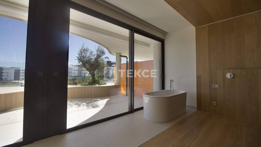 Die Wohnanlage bietet attraktive Gemeinschaftsbereiche, die zum Entspannen und Genießen einladen an. Landschaftlich gestaltete Gärten schaffen eine angenehme grüne Umgebung, während der Poolbereich den perfekten Ort bietet, um sich zu entspannen und die Aussicht auf die Umgebung zu genießen. Die Architektur verbindet moderne Linien mit natürlichen Elementen und unterstreicht so das allgemeine Gefühl der Harmonie innerhalb der Anlage.
