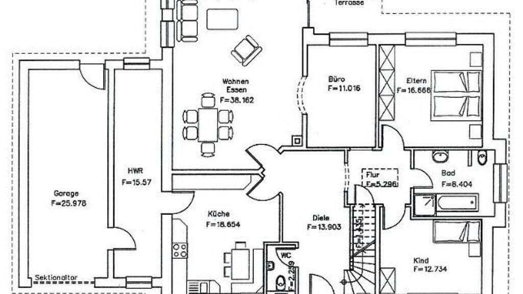 Erdgeschoss: - Diele (ca. 13,90 m²) I Gäste-WC mit Waschtisch und WC (ca. 2,26 m²) - Küche (ca. 18,65 m²) I HWR (ca. 15,57 m²) I Wohn- und Esszimmer (ca. 38,16 m²) - Büro (ca. 11,02 m²) I Elternschlafzimmer (ca. 16,67 m²) - Bad mit Badewanne, Dusche, Waschtisch und WC (ca. 8,40 m²) - Kinderzimmer (ca. 12,73 m²) I Flur (ca. 5,30 m²) Dachgeschoss: -Ist Ausbaufähig - ca. 85 m²