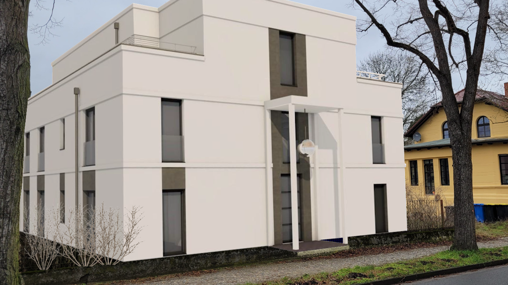 Das 2024 neuerrichte te Villenhaus mit vier Wohnungen verbindet