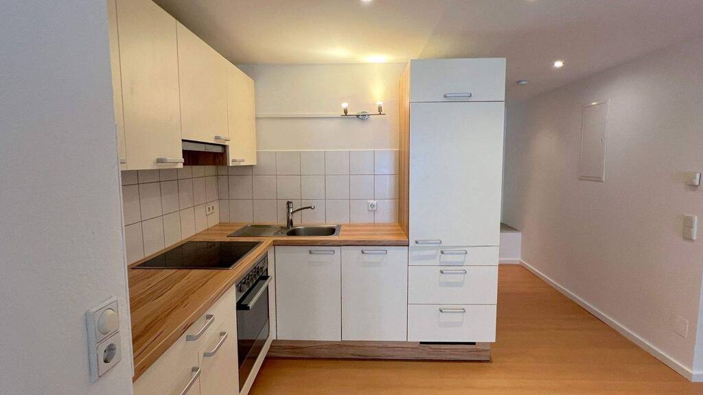 Die Wohnung befindet sich im ersten Obergeschoss des Wohnhauses. Vom Flur aus gelangen Sie in den Wohnraum, der mit modernen Deckenspots und einem Halbstock überzeugt. Ebenso gelangen Sie vom Flur aus ins Schlafzimmer, das durch seine gewölbten Decken einen einzigartigen Charme mitbringt. Beide Räume verfügen über große Fenster, die für eine schöne Lichtstimmung sorgen. Zusätzlich verfügt die Wohnung über eine moderne Einbauküche, deren Nutzung in der Miete inbegriffen ist. Zu guter Letzt finden Sie noch ein Badezimmer mit WC vor.