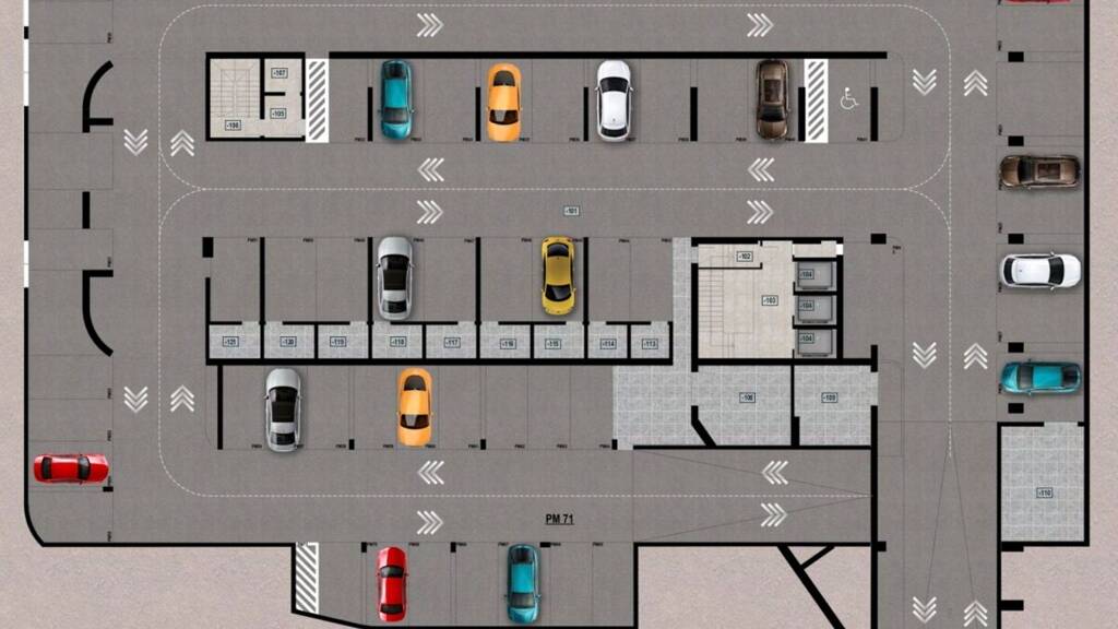 .Parking: Garaza na dve etaze (oko 100 mesta) + spoljasnji parking, EV punjaci
