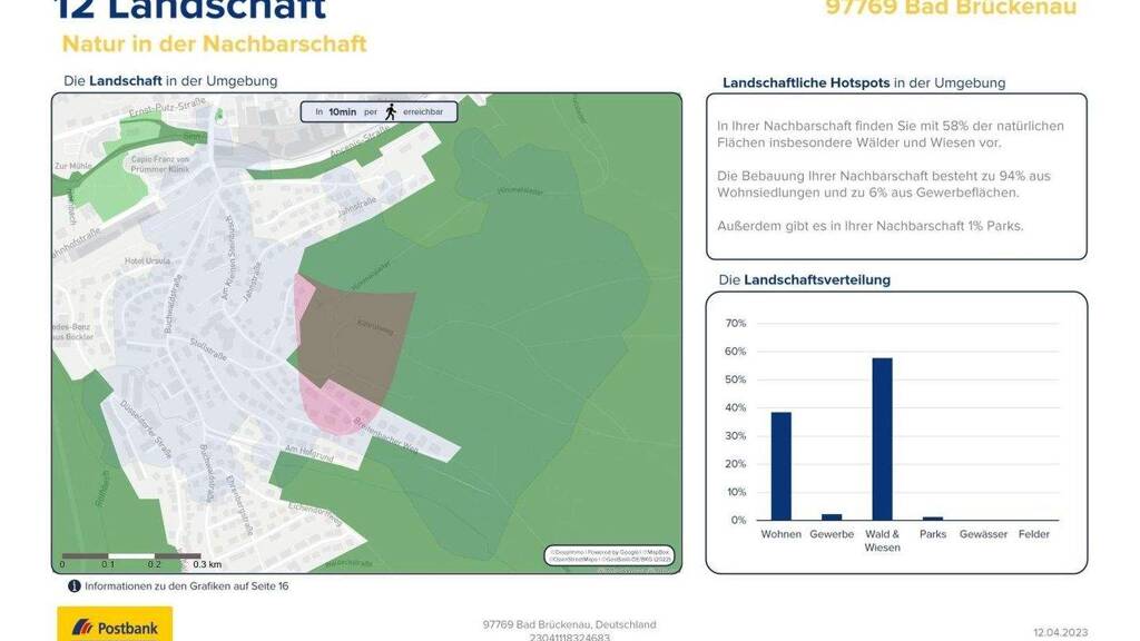 Die Immobilie befindet sich in einer bevorzugten Lage in Bad Brückenau, im Landkreis Bad Kissingen. Ein Kindergarten und eine Grundschule sind nur wenige Gehminuten entfernt. Weiterführende Schulen, Arztpraxen, Apotheken und Einkaufsmöglichkeiten erreichen Sie schnell mit dem Auto oder Fahrrad. Zudem bietet Bad Brückenau und der Umkreis zahlreiche kulturelle und sportliche Freizeitaktivitäten, wie unter anderem das Fahrradmuseum oder das Staatsbad. Des Weiteren gibt es besonders für Naturliebhaber vieles zu sehen, da Bad Brückenau in der bayerischen Rhön liegt. Zum einen befindet sich direkt in unmittelbarer Nähe ein Wald, der zu täglichen Spaziergängen einlädt. Zum anderen sind beliebte Ausflugsziele, wie das rote Moor und Kreuzberg, das beliebteste Ausflugsziel in der Röhn, schnell zu erreichen. Die idyllische Kleinstadt liegt im Herzen Deutschlands und ist 7 km von der A7 entfernt.