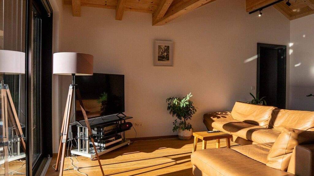 Besonders hervorzuheben sind die großzügigen Außenflächen: Zwei Balkone, jeweils direkt von den Schlafzimmern aus begehbar, bieten private Rückzugsorte, während die weitläufige Sonnenterrasse mit beeindruckendem Ausblick zum Entspannen und Genießen einlädt und den Wohnraum ideal ins Freie erweitert. Auch technisch überzeugt die Wohnung auf ganzer Linie. 3-fach verglaste Kunststofffenster sorgen für eine hohe Energieeffizienz und ein angenehmes Wohnklima, zudem sind bei allen Fenstern Anschlüsse für elektrische Außenjalousien vorbereitet. Die Kombination aus Stein- und Holzfassade verleiht dem Gebäude eine moderne und zugleich warme Ausstrahlung. Eine beheizte Tiefgaragenrampe, ein eigenes Kellerabteil, ein Waschraum sowie ein Allgemeingarten runden dieses attraktive Angebot perfekt ab und machen die Immobilie zu einem besonderen Zuhause mit hoher Wohnqualität.