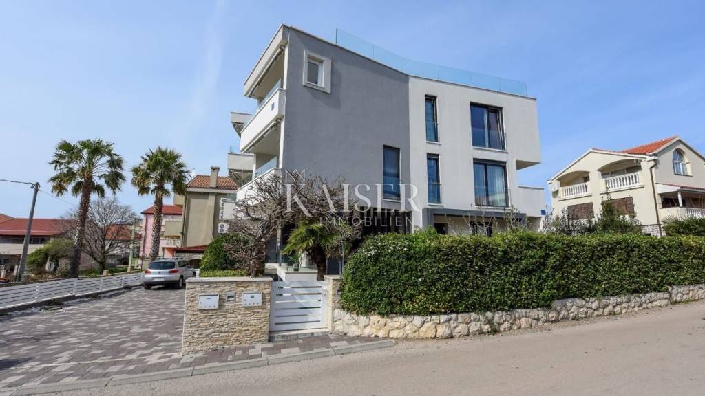 In der prestigeträchtigen und äußerst begehrten Gegend von Zadar, im ruhigen Ortsteil Diklovac, befindet sich dieses beeindruckende Luxusapartment, das höchste Lebensqualität, Eleganz und eine perfekte Lage direkt am Meer vereint. Nur 150 Meter vom kristallklaren Meer und gepflegten Stränden entfernt, in unmittelbarer Nähe zu exklusiven Einrichtungen wie dem Falkensteiner Hotel & Spa Iadera und dem Yachthafen Borik, bietet diese Immobilie ein einzigartiges Gefühl von Privatsphäre und Luxus, das auf dem Immobilienmarkt selten zu finden ist. Das Apartment umfasst 130 m² Wohnfläche und befindet sich im Hochparterre eines modernen Gebäudes mit nur sechs Wohnungen, was eine ruhige und private Atmosphäre garantiert. Die Räumlichkeiten sind auf Komfort und Funktionalität ausgelegt: