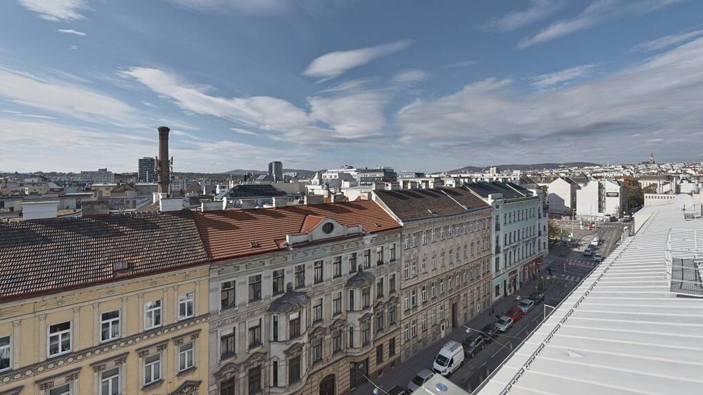Auf der unteren Ebene befindet sich der Wohnungseingang, ein Vorraum, eine Toilette mit Handwaschbecken, ein Bad mit Badewanne, Doppelwaschbecken, Waschmaschinenanschluss und Dachflächenfenster sowie 2 Zimmer. Über eine Treppe gelangen Sie in die rund 45 m² große Wohnküche, von wo aus Sie über ein großes Hebeschiebefenster die rund 28 m² große Terrasse mit herrlichem Blick über die Stadt. Auf dieser Ebene befindet sich auch ein weiteres Schlafzimmer (Master Bedroom). Das en suite Badezimmer mit Dachflächenfenster rundet den privaten Bereich ab. Ein weiteres Highlight ist in der Wohnküche eine fast vollständig verglaste Wand die den schönen Ausblick in den begrünten ruhigen Innenhof noch näher in die Wohnung hereinholt. An heißen Tagen kühlt bei Bedarf eine Klimaanlage die Aufenthaltsräume. Im Winter überzeugt die behagliche Fußbodenheizung.